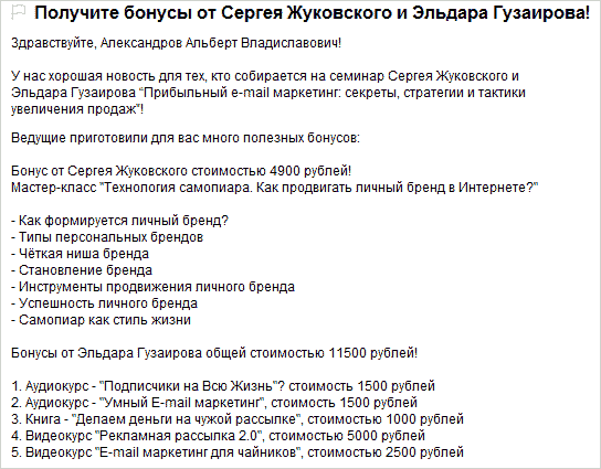 Если вы стремитесь зарабатывать в интернете, то вы наверняка подписаны на какого-нибудь инфо-бизнесмена? Азамат Ушанов, Андрей Парабеллум или еще кого-то — не суть важно. Так вот. Иногда они расщедриваются и высылают своим подписчикам полезные бесплатности: записи вебинаров, семинаров, электронные книги, приглашают на бесплатные вебинары.